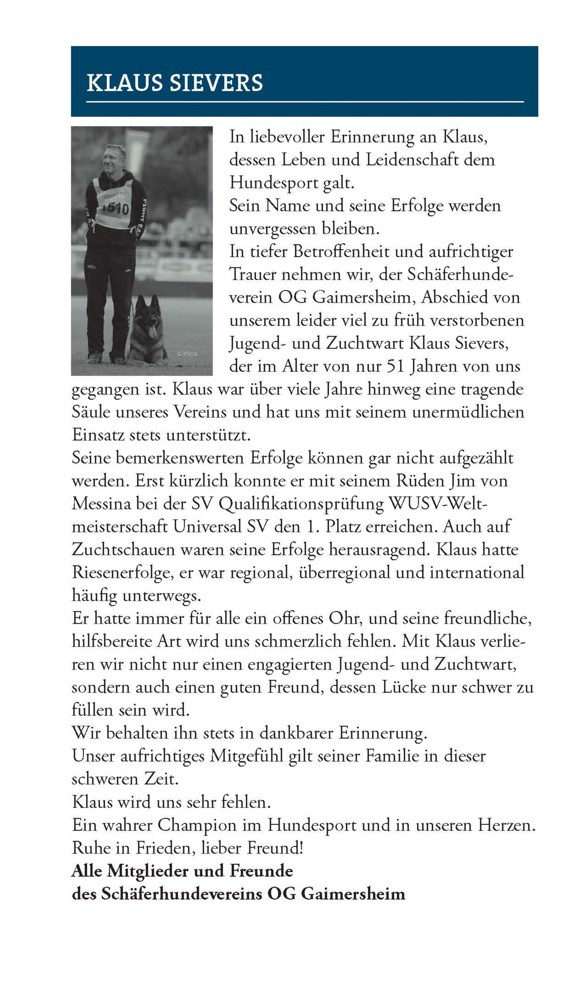 Es erfüllt uns mit großer Bestürzung, vom plötzlichen Tod unseres langjährigen Jugend- und Zuchtwart Klaus Sievers zu hören.